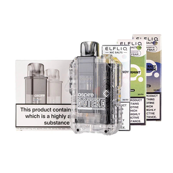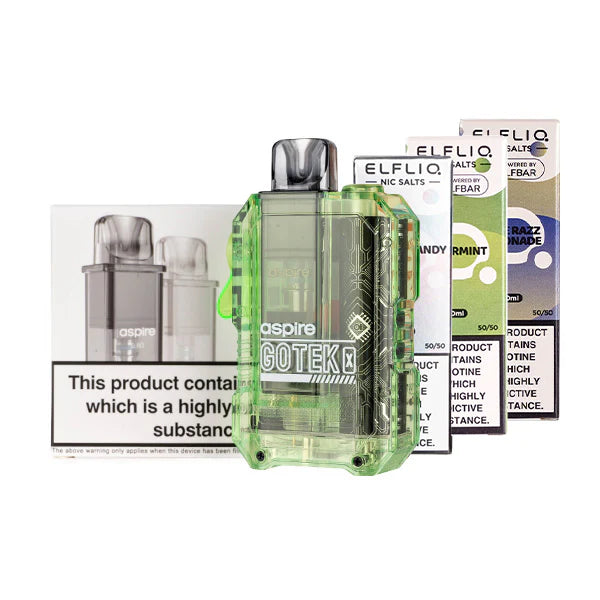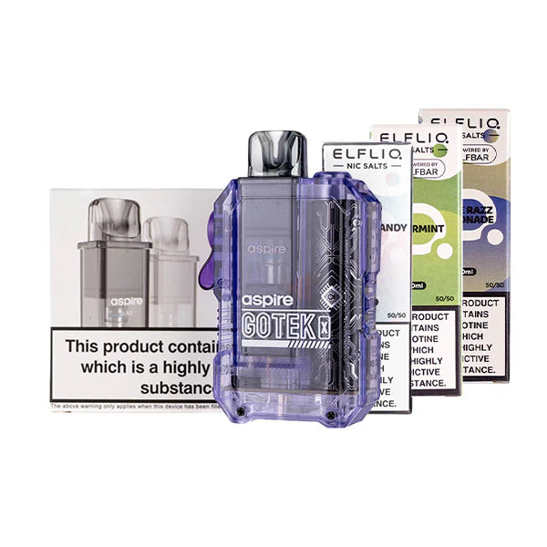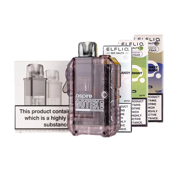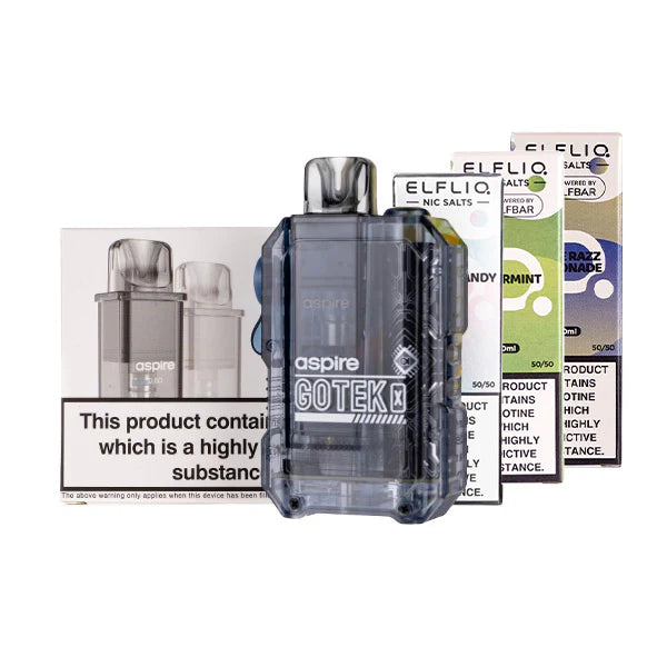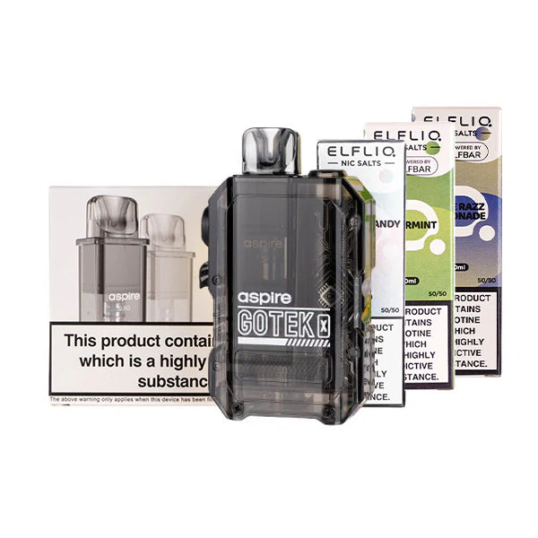 Picking the Aspire Gotek X Bundle [Elf Liq Edition] is a smart buy for a high-quality, reusable vape kit that can save you up to 60% on your yearly spending. ELFLIQ offers 40 tasty flavors in nicotine strength options of 5mg, 10mg and 20mg. This bundle will give you a complete setup that tastes as good as any disposable but at a much lower cost!